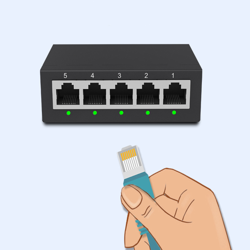 5 10/100/1000Mbps Auto-Negotiation RJ45 ports supporting Auto-MDI/MDIX