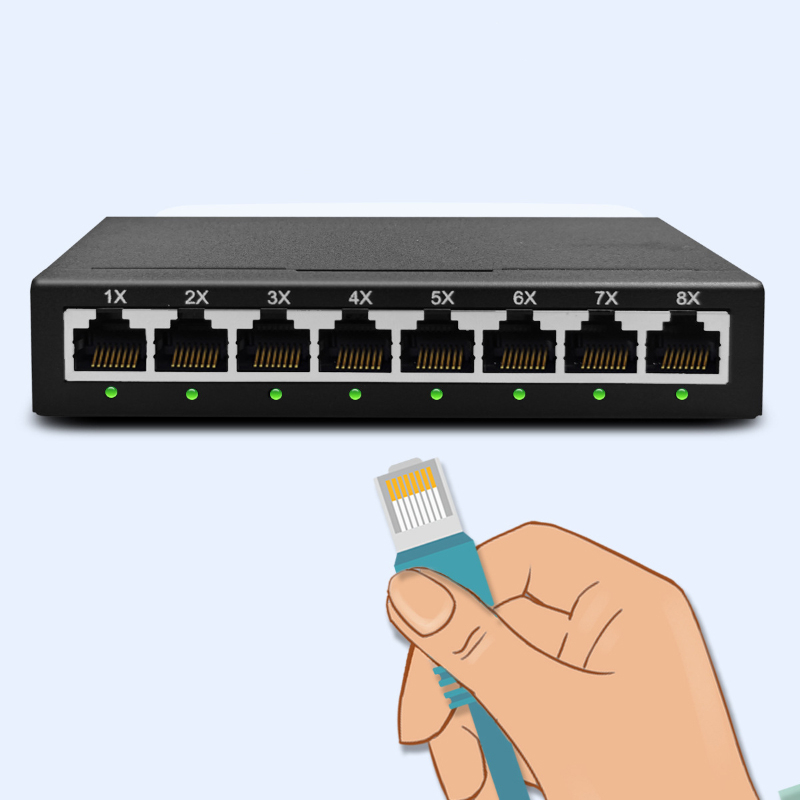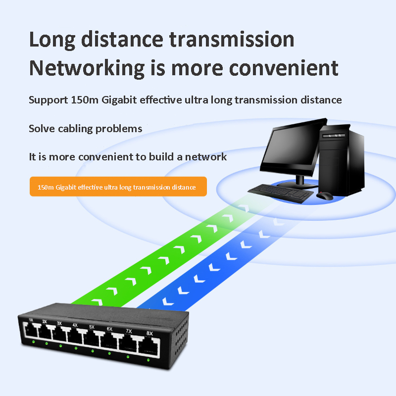 8 10/100/1000Mbps Auto-Negotiation RJ45 ports supporting Auto-MDI/MDIX.